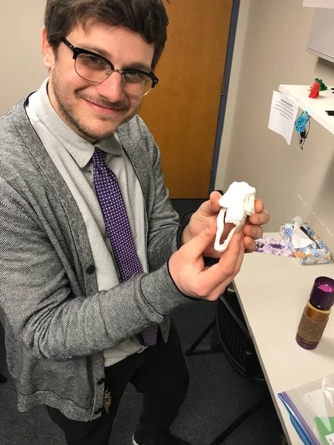 You may be wondering, how did the school therapist come to take on the role of the 3D printing specialist? Ethan explained that when Center Point received the first printer a few years back, it made sense for him to take on the role since he has more flexibility in his schedule than the teachers and family services coordinator. He admitted that it took him a few years to hone in on the various coding and programming skills needed to master the machine; 3D printing is very complex!