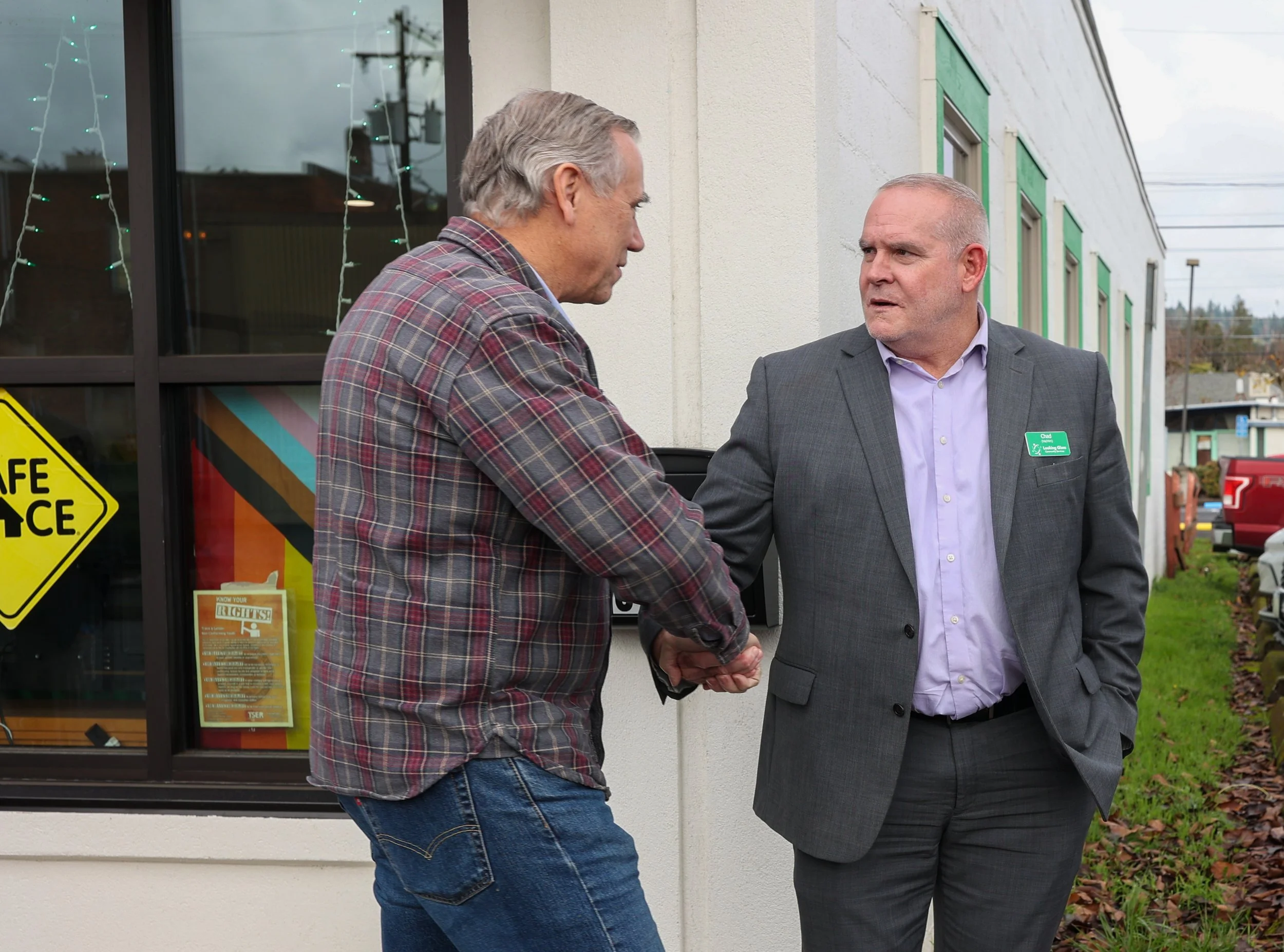 On Monday, November 24, Senator Jeff Merkley made a visit to the Looking Glass Rural Program in Cottage Grove. He and his team toured the facility and spoke with staff members including the Looking Glass President & CEO, Chad Westphal.