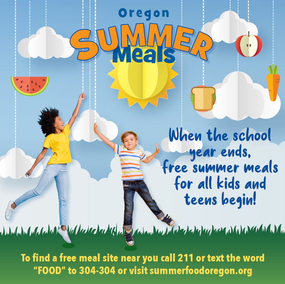 When school is out, healthy meals are still in! Through programs supported by the Oregon Department of Education (ODE) Child Nutrition Program, free summer meals are available to children in our community.